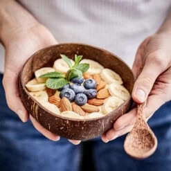 Die Natur bringt die besten Sachen auf den Tisch – und jetzt auch die Coconut Kokosnussschale 430 ml. Ja, diese Schale besteht aus echter Kokosnuss, das ist sehr robust und macht jedes Teil zu einem Unikat. Als naturverbundener Allrounder ist sie perfekt zum Servieren Ihrer Lieblings-Bowl oder den kleinen Snacks am Abend.